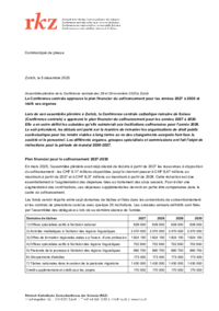 Communiqué de presse Zurich, le 5 décembre 2025 Assemblée plénière de la Conférence centrale des 28 et 29 novembre 2025 à Zurich La Conférence centrale approuve le plan financier du cofinancement…