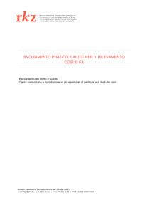 SVOLGIMENTO PRATICO E AIUTO PER IL RILEVAMENTO COSÌ SI FA Rilevamento del diritto d‘autore Canto comunitario e riproduzione in più esemplari di partiture e di testi dei canti Svolgimento pratico e…