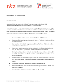 Medienmitteilung, frei zur Veröffentlichung Zürich, 29. Juni 2022 Festakt zum 50-jährigen Bestehen der RKZ und Plenarversammlung vom 24./25. Juni 2022 «Wir müssen der Wandel sein, den wir in der…