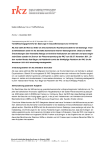 Medienmitteilung, frei zur Veröffentlichung Zürich, 1. Dezember 2021 Plenarversammlung der RKZ vom 26./27. November 2021 in Zürich Verstärktes Engagement für die Seelsorge im Gesundheitswesen und…
