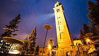 Benno Schnüriger weiht Ski-WM-Lichtinstallation in St. Moritz ein.