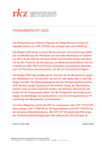 Nachfolgend stehen der aktuelle Jahres- und Finanzbericht der Römisch-Katholischen Zentralkonferenz der Schweiz (RKZ) für das Jahr 2025 zum Download bereit. Die beiden Berichte geben Einblick in…